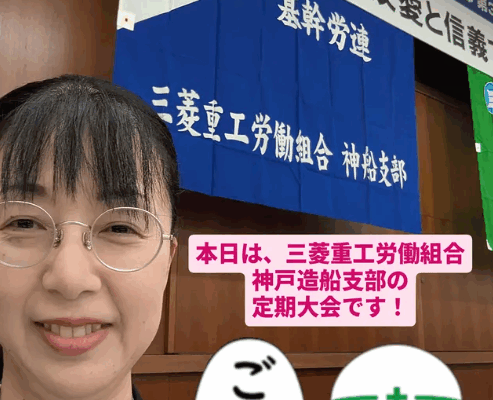 11/21(金)において、定期大会が開催されました! これから2年間の活動方針に対して、出席された代議員と活発な議論を行った結果、 様々な視点で補強されて、満場一致で決定されました。 スローガンは、「多様性… 続きを読む 11/21 三菱重工労組神船支部 第38期定期大会